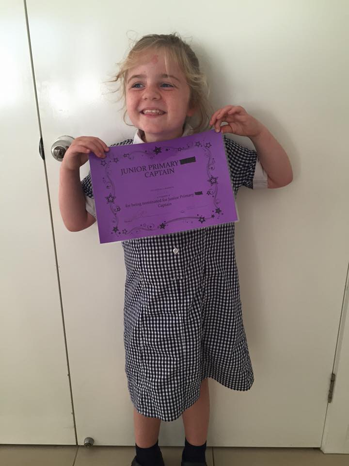She loves school and last year she was the junior primary school captain because she is very forthright and social. She has lots of friends and is close to her brothers and cousins. She gets invited to more parties than her brothers!